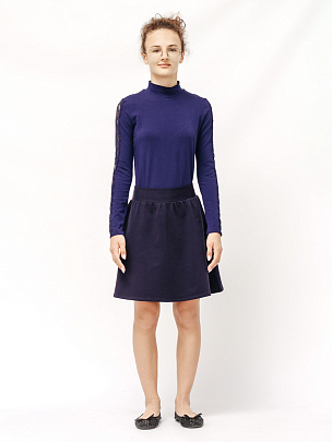 Бриджи длиной ниже колена, без боковых швов. Верхний срез обработан швом вподгибку, с предварительно притачанной резинкой.
