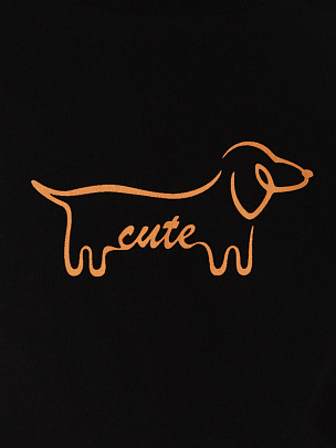 Пижама комбинированная из футболки и шорт. Футболка оверсайз с коротким рукавом. Горловина обработана притачной бейкой из рибаны с лайкрой. Перед оформлен небольшим принтом. Шорты набивные, свободного покроя длиной до середины бедра. Цельнокроенный пояс обработан плоским швом вподгибку с одновременным прокладыванием резинки.