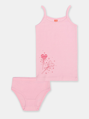 Комплект для девочки (платье модель "туника", бриджи) коралловый