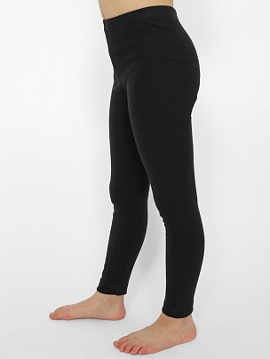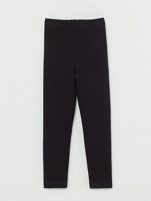Легинсы для девочки без боковых швов и манжет. Верхний срез обработан швом вподгибку, с предварительно притачанной резинкой.