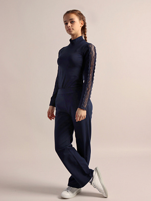 Водолазка для девочки с длинными рукавами и воротником-стойкой. Рукава со вставками из эластичного кружева.