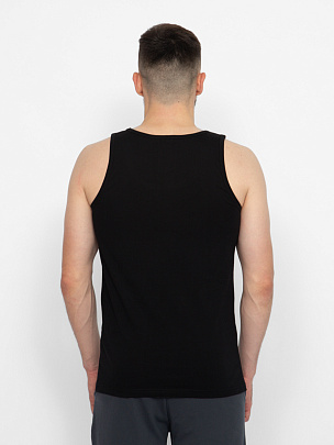 Майка мужская из кулирки. Срезы горловины и пройм окантованы бейкой из основного полотна.